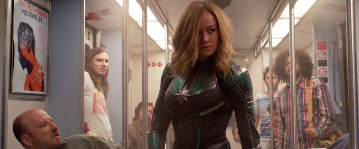 La primera escena es cuando Danvers llega a la tierra, mientras está un poco perdida y mira un mapa, un motociclista (Robert Kazinsky) se acerca para coquetearle y preguntarle por qué no sonríe, pero a la superheroína no le gusta el comentario y rompe su mano para quitarle la chaqueta y motocicleta.